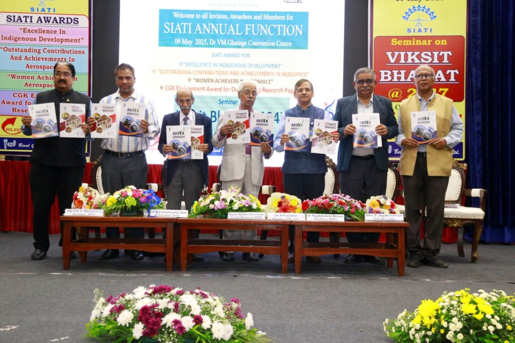 AEDEX & Airport Expo events launched & release of brochures in presence of Sushree SHOBHA KARANDLAJE, Hon’ble Minister of State for Labour & Employment and Minister of State for MSME, Govt. of India and other dignitaries at the SIATI's Annual Awards Function, on May 9th 2025, Bengaluru.